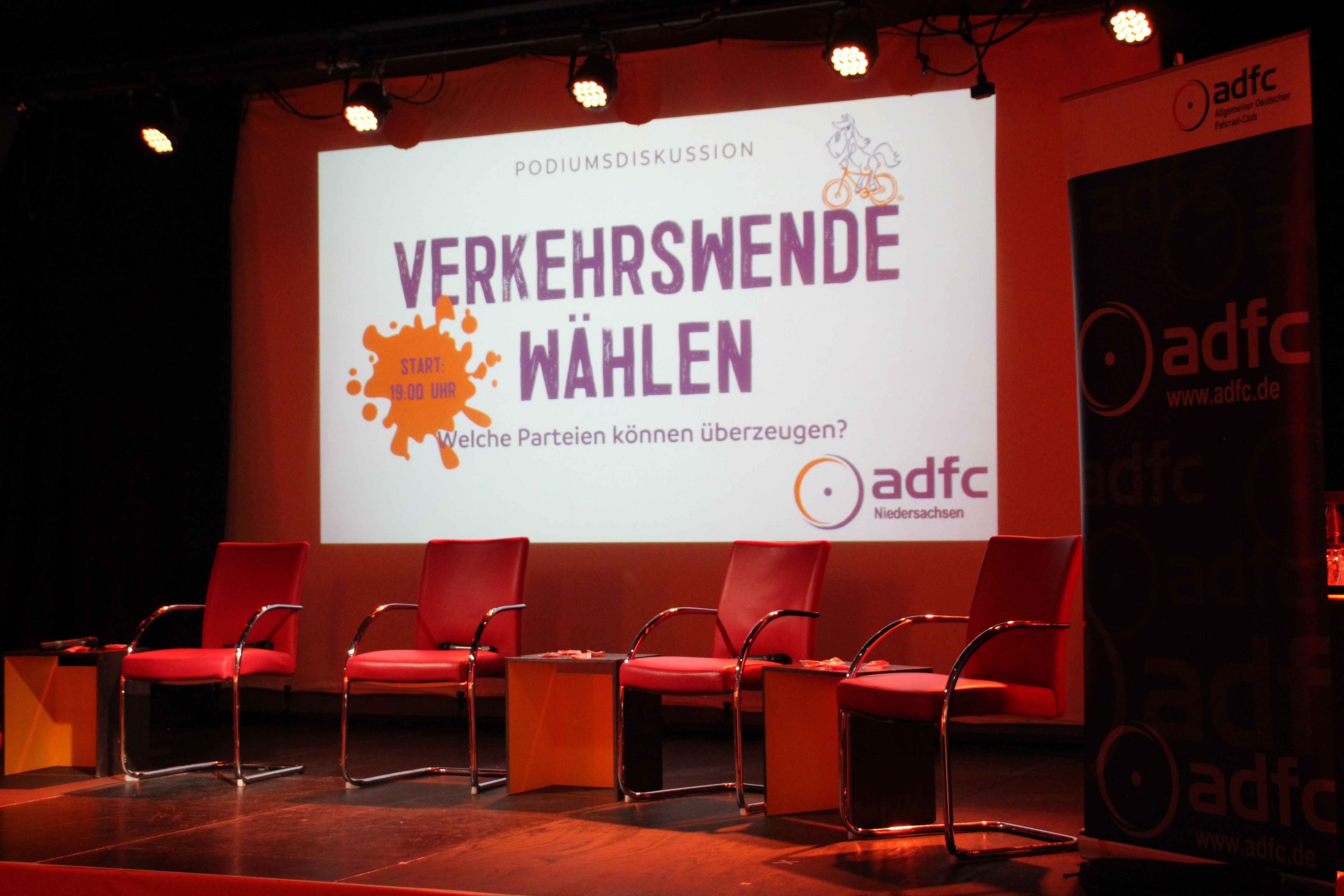 Am Dienstagabend, den 6. September 2022, holte der ADFC Niedersachsen die Parteivertreter:innen der CDU, SPD, Grüne und FDP auf das Podium, um mit ihnen ihre Vorstellungen von Verkehrswende zu diskutieren.