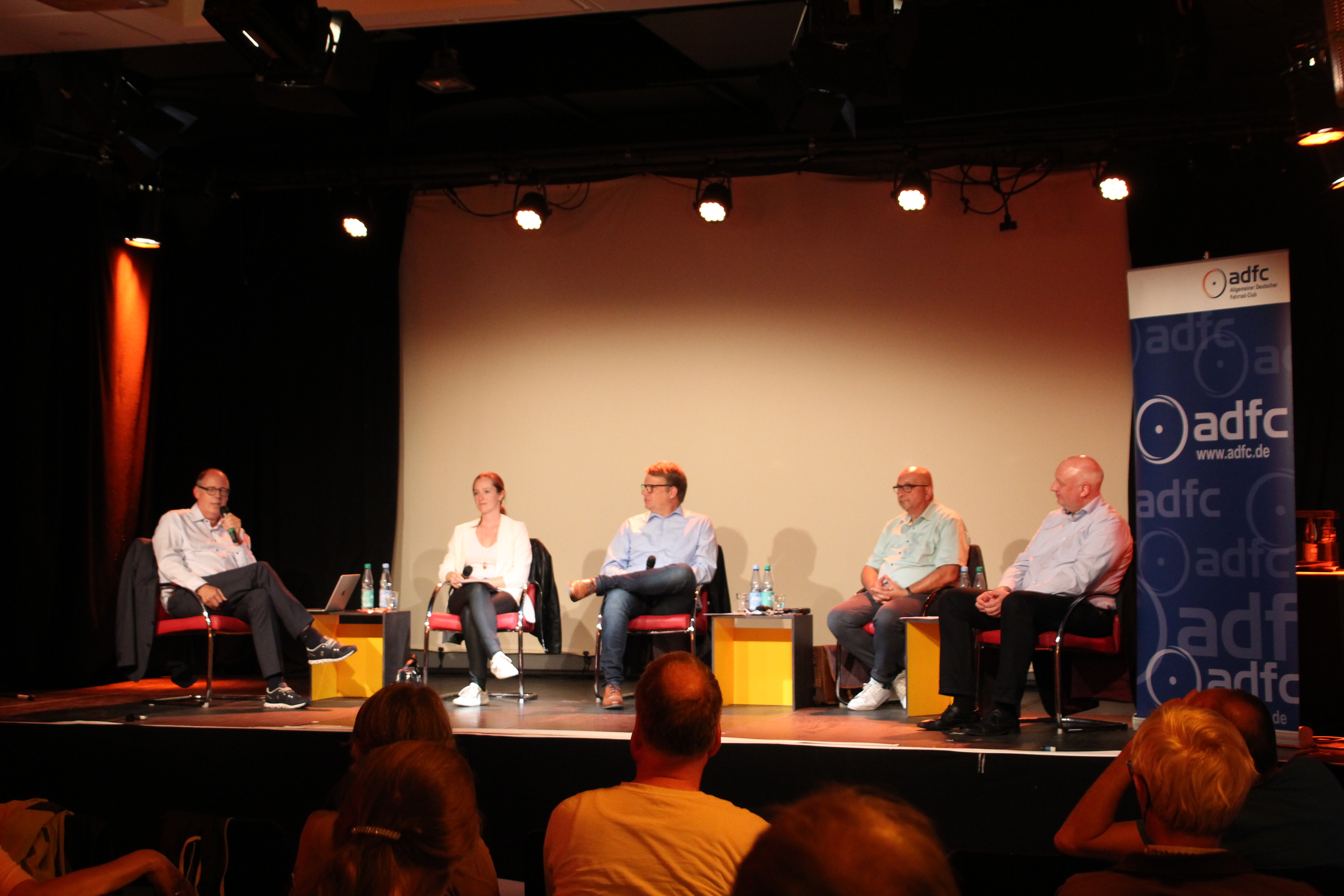 Alle Vertreter:innen auf dem Podium sahen den umweltfreundlichen Verkehr als wichtiges Kriterium für den Ausgang der Landtagswahlen. Die junge CDU-Landtagskandidatin Alexandra Backhaus versprach, als einziges (noch) Nicht-Landtagsmitglied des Podiums, den Wandel in ihrer Partei bei diesem Thema vorantreiben zu wollen. Gleichzeitig betonte Sie aber auch, dass das aktuelle Wahlprogramm bereits einige gute Angebote mache. Detlev Schulz-Hendel (Grüne) stellte eindeutige Forderungen nach mehr Platz und Geld für den Radverkehr auf. Dies sei notwendig, um eine gerechte Verteilung der Ressourcen und ein Miteinander im Straßenverkehr zu ermöglichen. Jörg Bode verstand unter Miteinander den gleichzeitigen Ausbau von Rad- und Kraftverkehr, den seine Partei forciere. Laut Christoph Bratmann will die SPD eine Steigerung des Radverkehrs in Niedersachsen von 15% auf 25% Prozent in der nächsten Legislaturperiode erreichen.