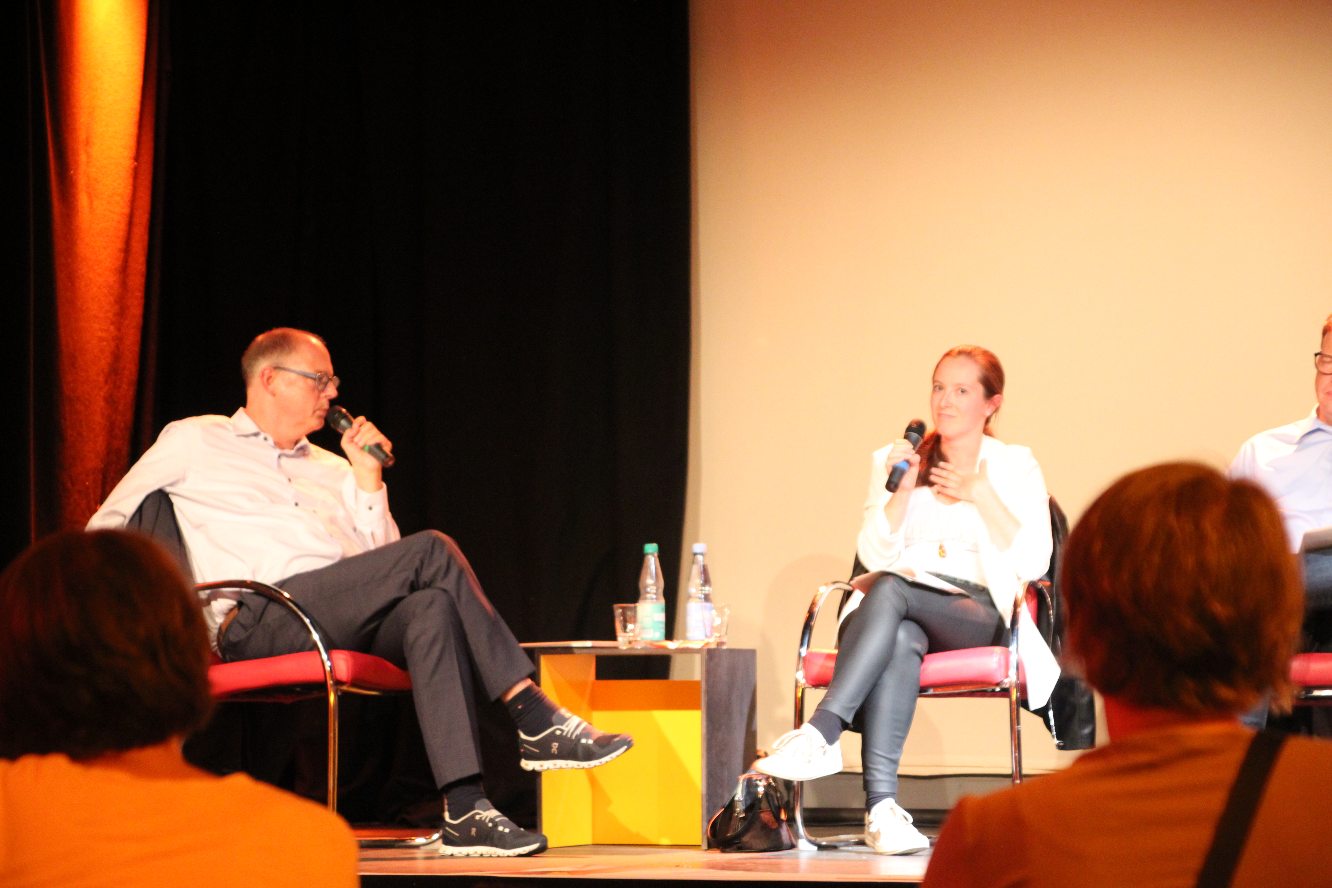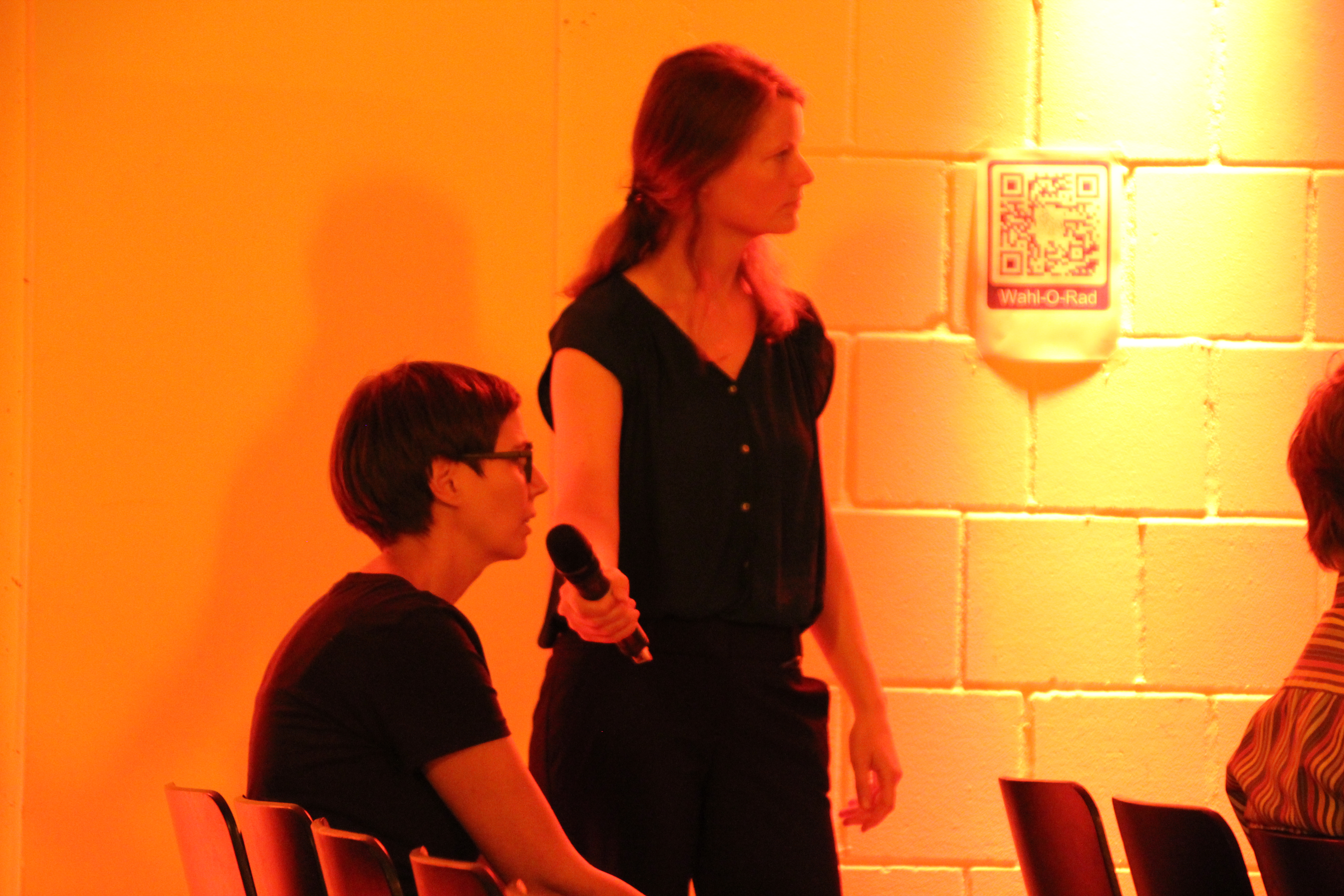 Der Moderator Roman Mölling brachte die Teilnehmenden des Podiums immer wieder in Zugzwang, klare Position zu beziehen. Als roter Faden des Abends nutzte er dazu den Fragenkatalog des Wahl-o-Rads zur Landtagswahl. Die Parteivertreter:innen waren somit nicht nur herausgefordert auf die Fragen zu antworten, sondern gleichzeitig auch auf die Stellungnahmen ihrer eigenen Parteien zu reagieren. Ausweichen unmöglich.